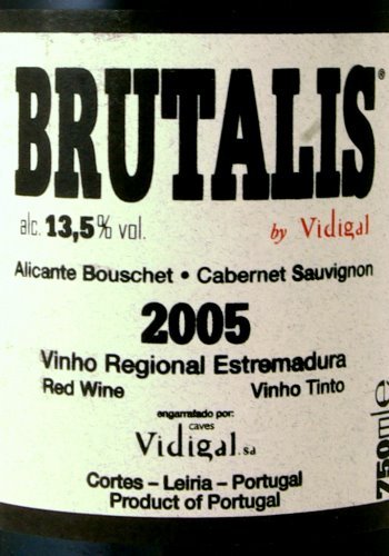 Brutalis 2005 : Vino portugués que ha escogido una tipografía a caballo entre la clásica y el far west. No emplea imágenes, pero sus dos tonos, negro y blanco la convierten en una etiqueta muy personal.