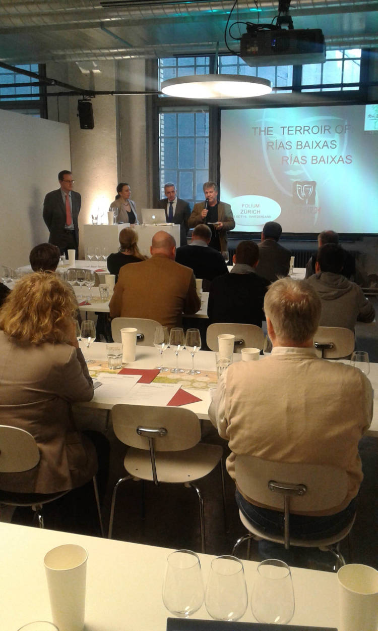 Además de la propia muestra de vinos, Germán Muñoz, de la empresa Terroir 34, es el encargado de dirigir la Masterclass a una treintena de profesionales ayer en Zurich y lo hará mañana en Ginebra. La Masterclass se inició con una presentación del terroir de Rías Baixas para después continuar con explicaciones sobre los productos amparados por la Denominación de Origen y con una cata comentada de ocho vinos presentes en esta importante cita promocional. El objetivo es ampliar el conocimiento de los vinos de Rías Baixas en un mercado relevante como Suiza que ya cuenta con un plan sectorial propio dentro del apartado promocional de la D.O. Rías Baixas.