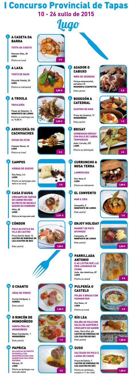 1ª edición del Concurso Provincial de Tapas de Lugo que lleva desde el pasado viernes en marcha y que se prolongará hasta el próximo domingo día 26.