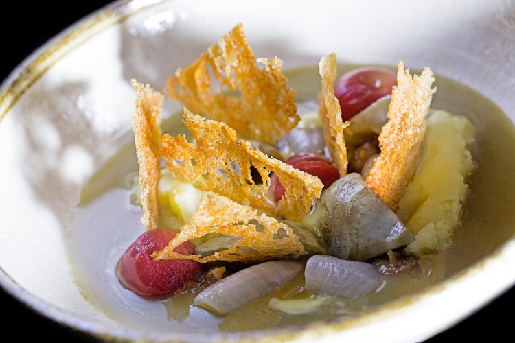 El protagonista del plato es la verdura, y la proteína animal se presenta en forma de jugo, salsas o caldos, sin su parte fibrosa. Solo aparece de forma sutil como complemento para redondear los platos y obtener verduras suculentas.