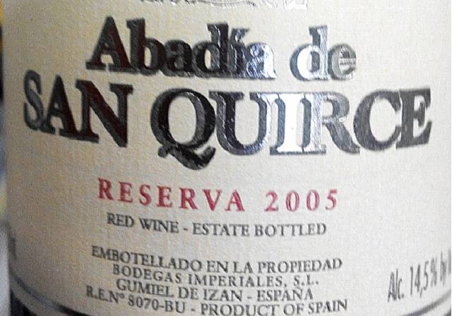 Abadía de San Quirce Reserva 2005 es otro clásico de la Ribera del Duero que nos permite ver lo que supone en esta zona la larga crianza en los vinos y que es elaborado por Abadía de San Quirce Bodegas Imperiales.
