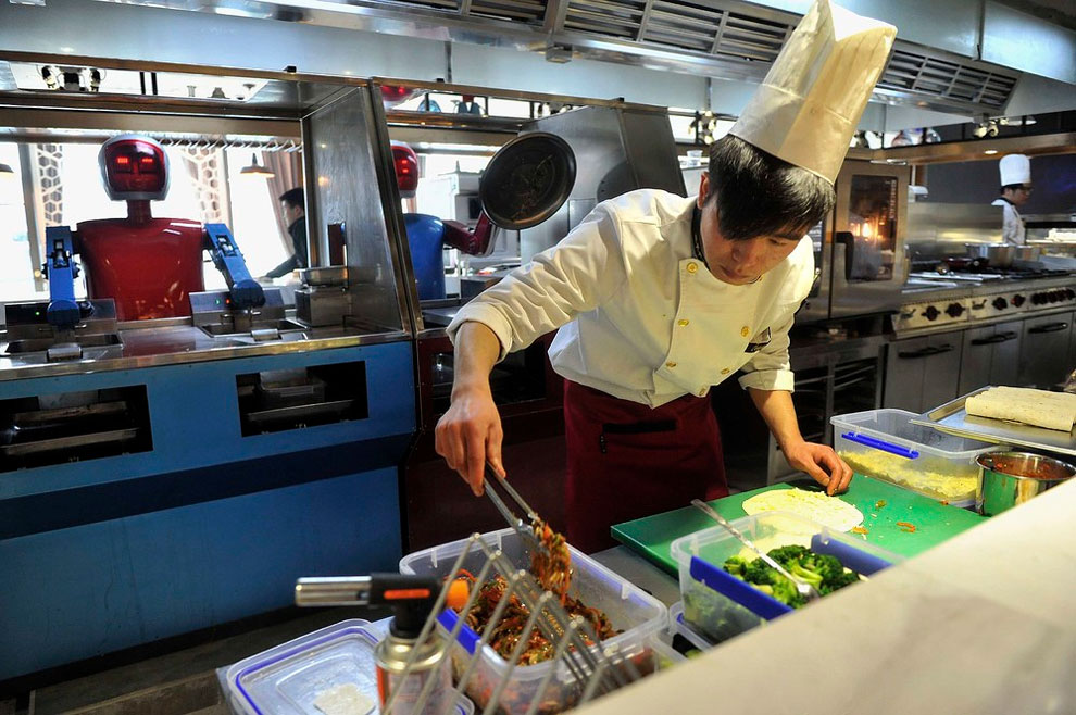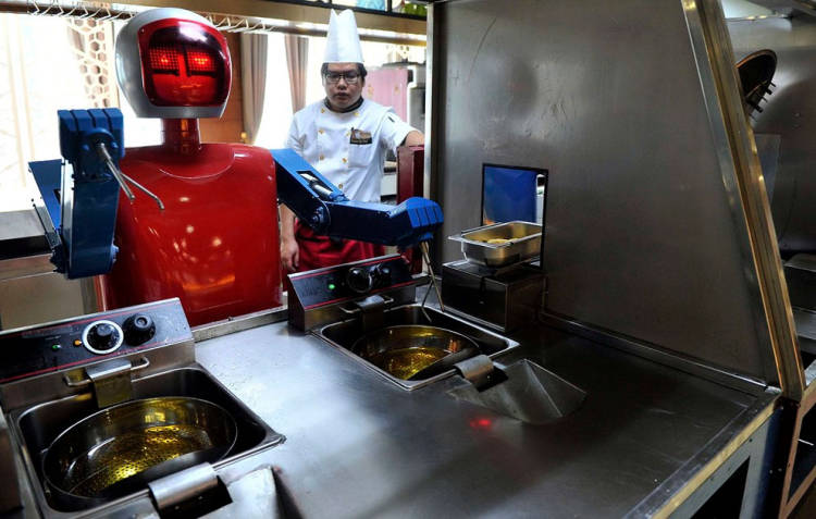 Y es que casi, ya que 30 robots que se encargan de cocinar, entregar la comida a los clientes y , como no podía ser de otro modo, darles la bienvenida.