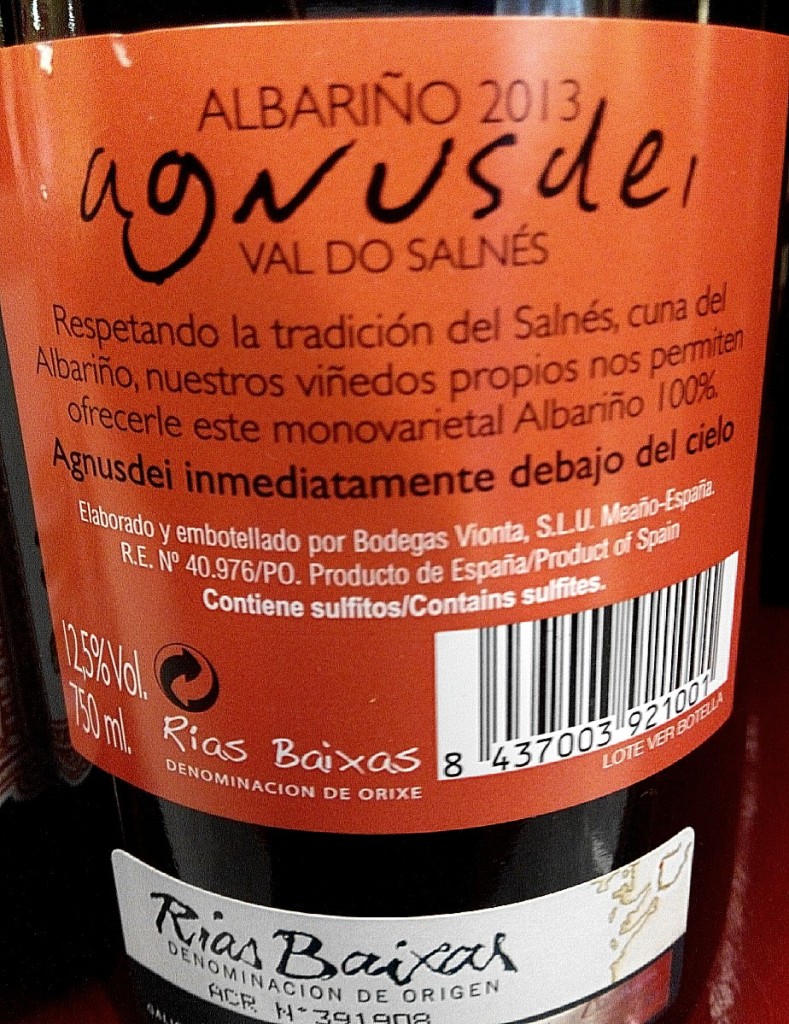Y para comenzar también este nuevo año, hemos decidido comentaros este Agnusdei 2013, un albariño procedente de la subzona do Val do Salnés, elaborado por Bodegas Vionta.
