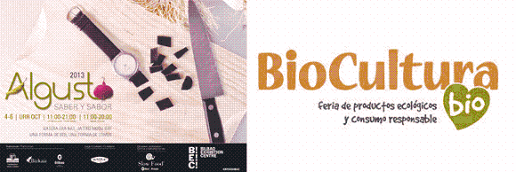 Algusto es el Salón Gastronómico y de la Alimentación y Biocultura es la Feria de Productos Ecológicos y Consumo Responsable, que en este año 2013 se celebra en el Bilbao Exhibition Centre de Barakaldo - Bizkaia desde hoy mismo hasta el próximo domingo.