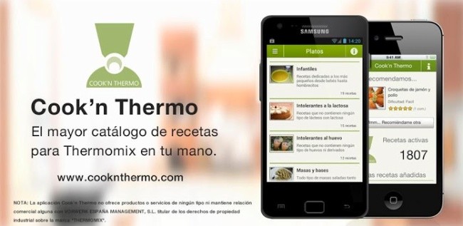 - Cook´n Thermo: Recetas TMX, exacto, si sois unos enamorados de la Thermomix esta es vuestra aplicación. Más de 1.800 recetas para realizar con el conocido robot de cocina. Además podremos compartir en redes sociales, valorar recetas e incluso aportar las nuestras. Disponible para Android e iOS.