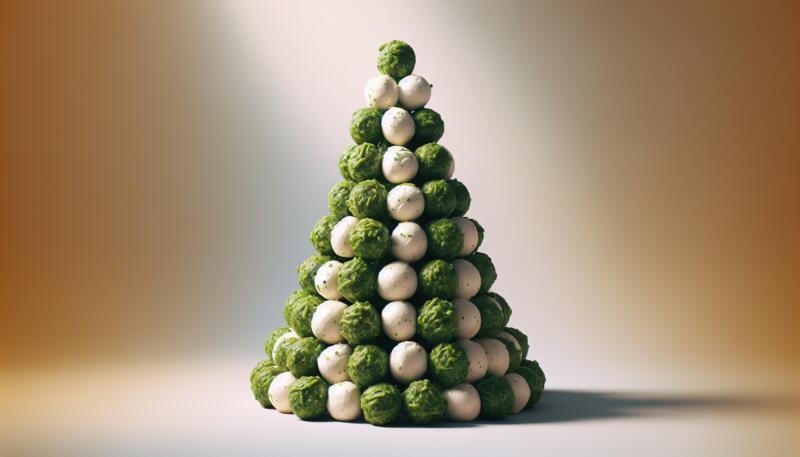 - Coloca las bolitas en una bandeja de horno, organizándolas en forma de árbol de Navidad. Puedes moldear la bolita superior para que sirva como "estrella".