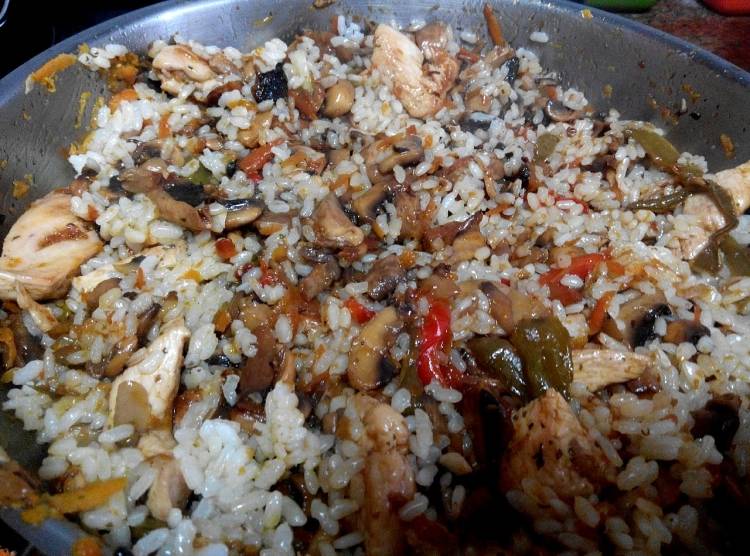 Por lo tanto, aunque es una receta sencilla, necesita de ser realizada por partes: el arroz por un lado, el pollo a la plancha por otro y el falso pisto de verduras por otro.