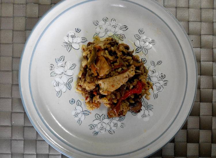 Arroz con pollo a la plancha con falso pisto de verduras 7