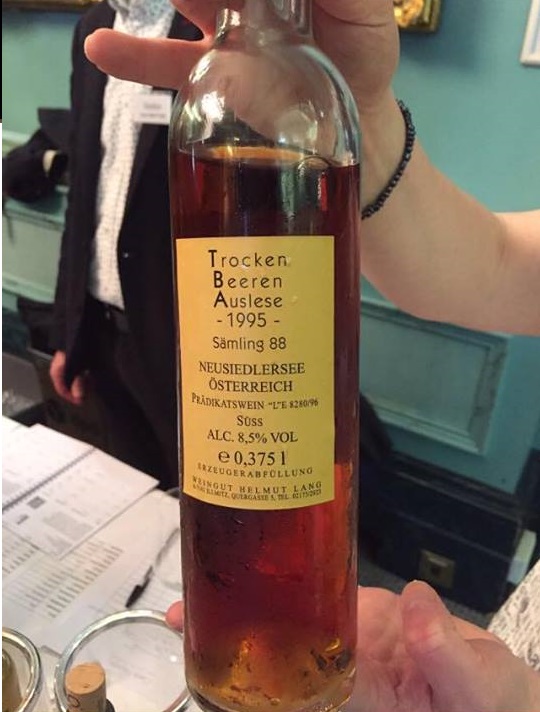 Catamos diferente vinos, blancos jóvenes, tintos de producción limitada, ice wine (vino de hielo)…. Uno de los vinos que más nos sorprendió fue Lang Trockenbeernuslese 1995. Un color oro oscuro y un dulce toque a miel y cítricos como naranja. Tanto en nariz como en boca. Muy equilibrado. Final largo y muy persistente en boca.