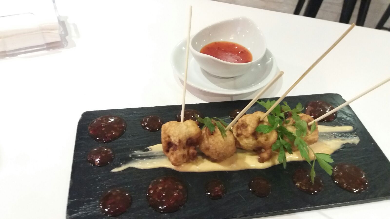 'Chupa Chups crujiente de costilla adobada con DIP de chili dulce', es la siguiente exquisitez que nos podemos encontrar. El toque del chili se contrapone la potencia del adobado de la carne y da una explosión de sabores fenomenal.