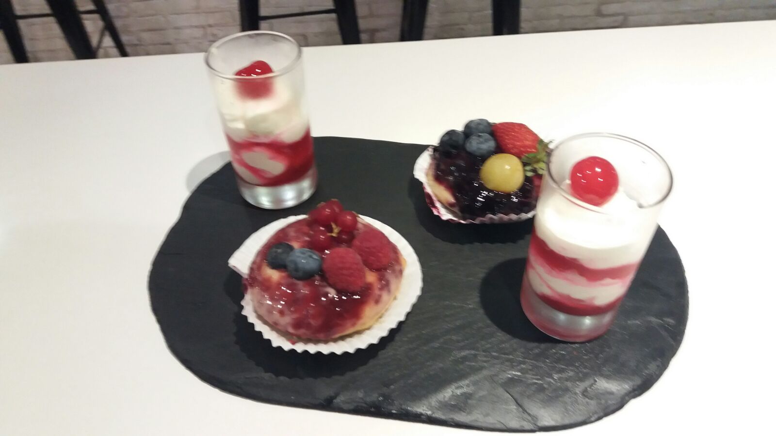 Y para terminar no podemos olvidarnos del postre. Una maravilla que para los amantes de lo dulce les va a impresionar. Se trata de esta 'Tarta moderna de queso y manzana con chupito de mousse de cereza', una presencia inconfundible de muchos de los productos de la fruta berciana.