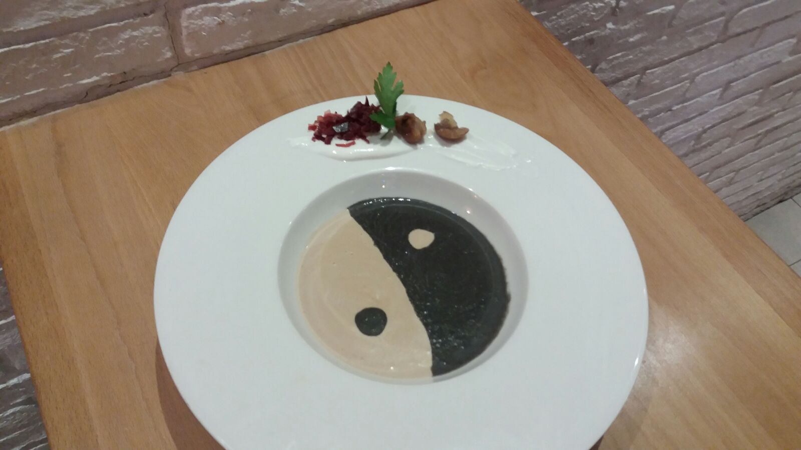 Como tercer plato, nos encontramos con una 'Crema Yin Yan de cecina y castaña asada con guarnición'. Una combinación de sabores de dos productos leoneses como son la cecina y la castaña que os va a sorprender.