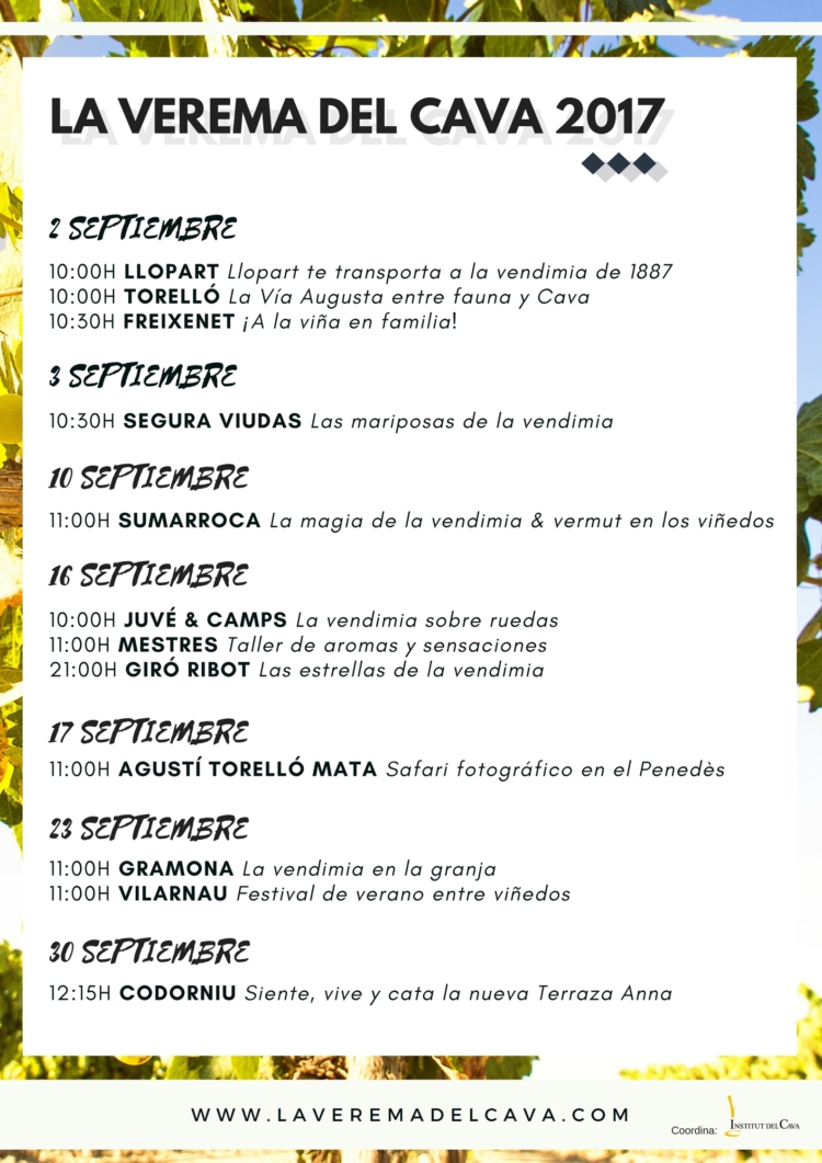 La Verema del Cava ratifica, en esta segunda edición, la apuesta de las bodegas productoras de Cava para trabajar el enoturismo y permitir a los visitantes experimentar y conocer de primera mano el entorno donde nace y se elabora el Cava. La iniciativa, impulsada por el Institut del Cava, se suma a la serie de propuestas sugerentes ofertas por las bodegas de todo el país, que hacen que el Penedès se convierta en un destino remarcado dentro de las Rutas del Vino de España, recibiendo 486.388 visitantes el 2016 y liderando así el enoturismo en Cataluña.