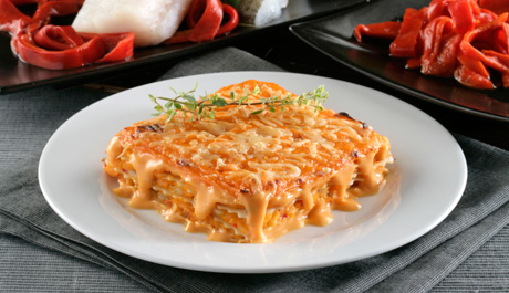 Se mete en el horno a gratinar y se sirve cuando la bechamel está bien dorada, en su misma fuente.
