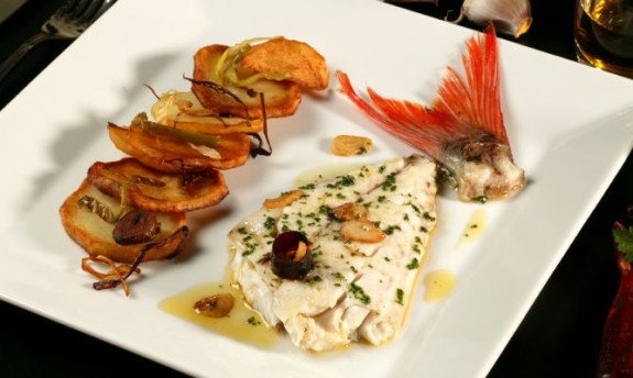 Besugo al horno con vino blanco