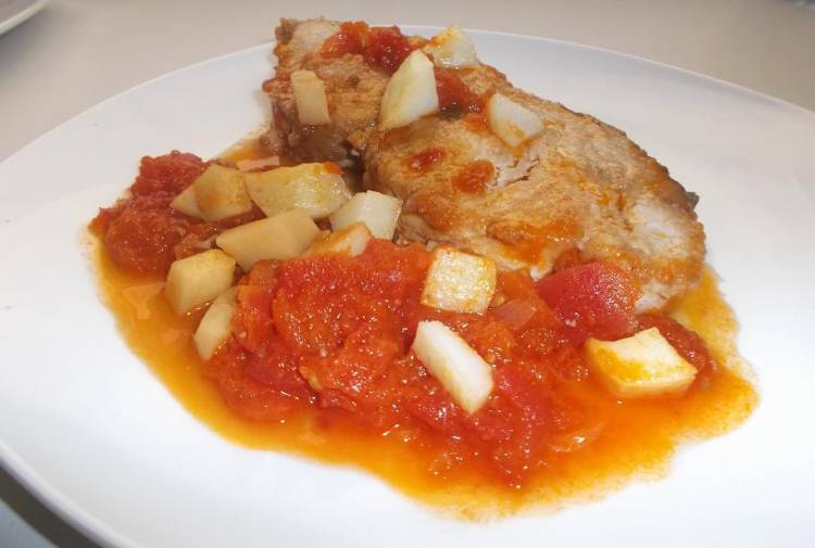 Hoy toca pescado, hoy os dejamos la que hicimos hace unos días, esta receta de bonito con tomate, receta de toda la vida y que nunca falla. Escogimos como guarnición unas patatas fritas cortadas en cuadraditos que le dan siempre otra alegría al plato.