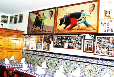 Su interior es claramente de temática taurina, con una zona de barra y un comedor están bordeados por un friso de azulejos antiguos y en el comedor, las paredes están repletas de cuadros taurinos pegados a la pared, con muchas figuras del toreo dando pases y el retrato del diestro en su parte superior. Unas instantáneas que tienen un gran valor sentimental para los aficionados al mundo del toro.
