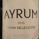 Otra incorporación al lineal llega de la mano de la zona de Valdepeñas. Es el vino Ayrum Gran Selección 2015.  Un vino que siendo joven, pasa tres meses en barricas lo que le da algo más de interés que el otro tempranillo joven que os acabamos de comentar. Este es también monovarietal Tempranillo.