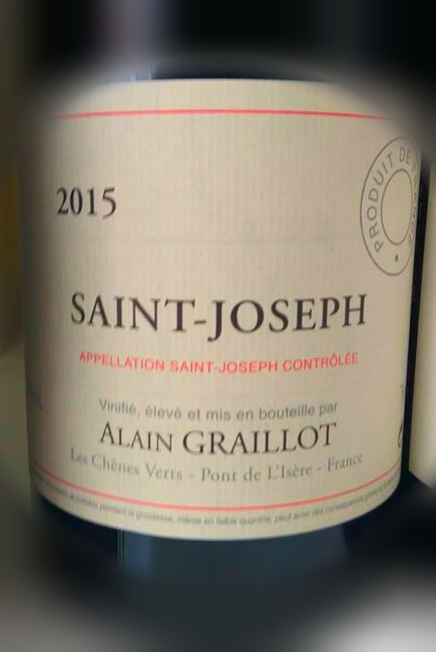Catamos Alain Graillot Saint-Joseph 2015, vino de Francia, en la zona del Valle del Ródano al amparo de la calificación Saint-Joseph, elaborado por la bodega Alain Graillot como monovarietal Syrah.