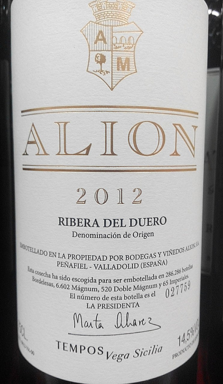 Un vino elaborado en la DO Ribera del Duero por Bodegas y Viñedos Alion.