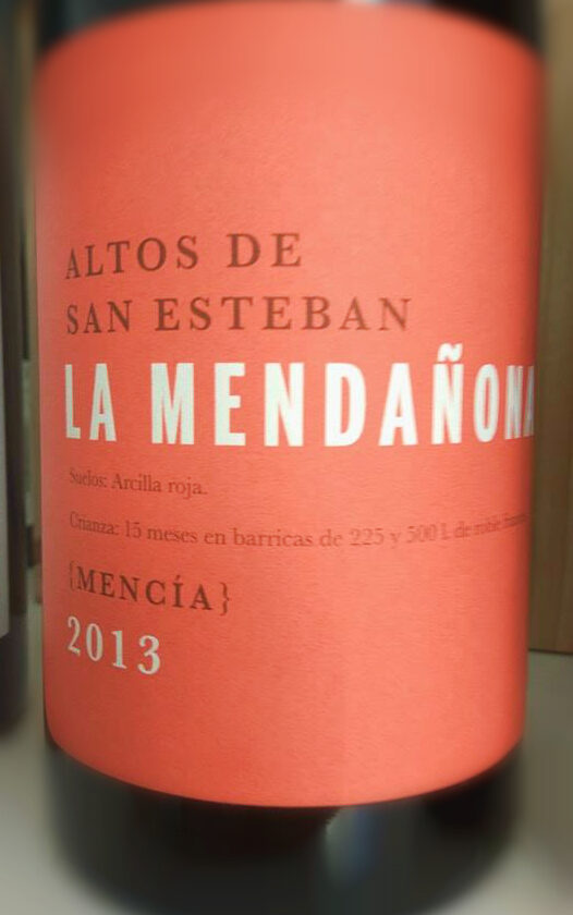 Catamos hoy Altos de San Esteban La Mendañona 2013, un tinto elaborado en la comarca del Bierzo por la bodega de Altos de San Esteban, que ha pasado una crianza de 15 meses en barricas de roble francés nuevas y seminuevas. Es un vino acogido en Vinos de Castilla y León y no DO Bierzo.