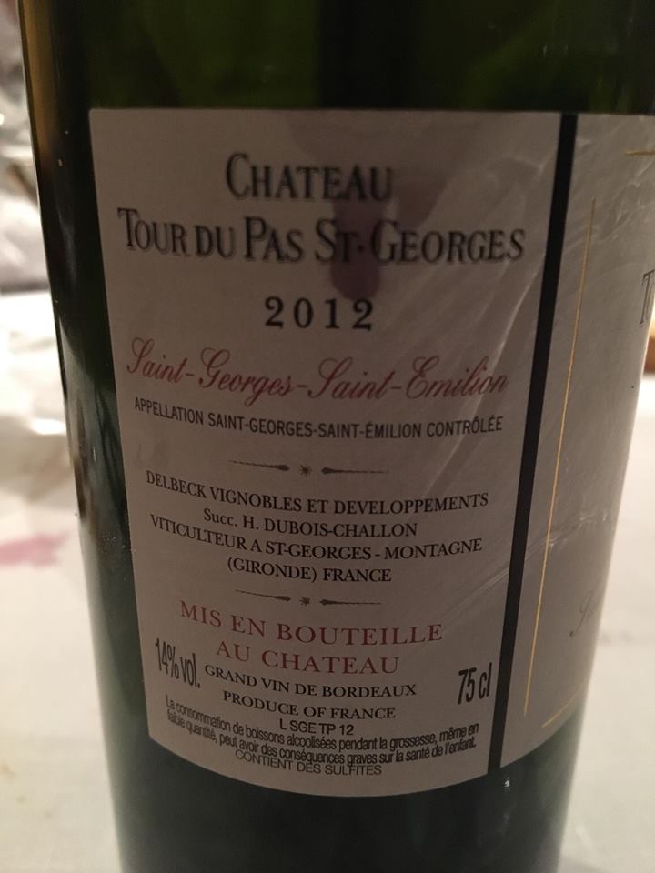 Os quiero dejar mis impresiones sobre este vino, Château Tour Du Pas St Georges 2012, elaborado en Francia, en la zona de Burdeos, y que está acogido a la apelación Saint-Georges-Saint-Emilion.