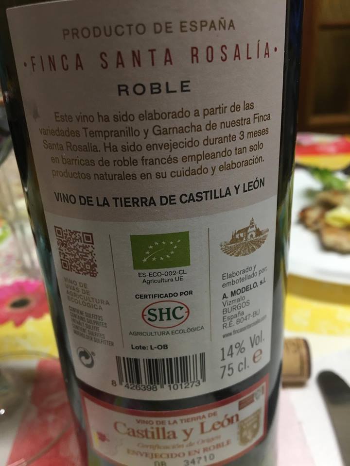 Elaborado por A. Modelo en Burgos, es elaborado con un 90% Tempranillo y 10% Garnacha. Todas las uvas pertenecientes a la finca propiedad de esta bodega denominada Finca Santa Rosalía, elaboración y tratamiento de las uvas con productos naturales. Un paso breve por madera de 3 meses, en roble francés.