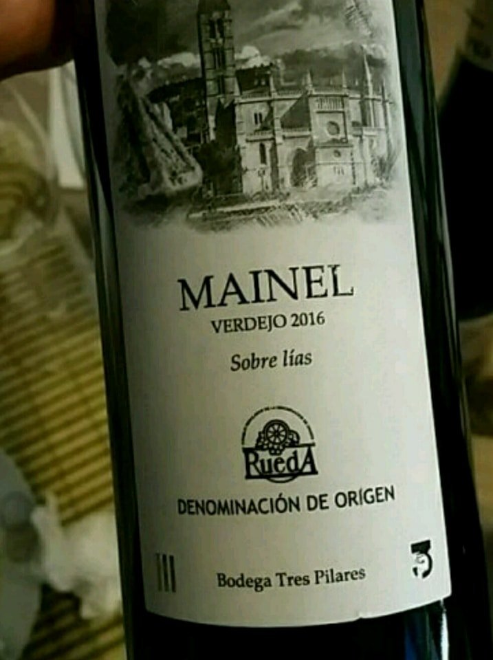 Empiezo el año con la cata de un vino español, concretamente de la DO Rueda. Se trata de este Mainel Verdejo 2016 Sobre Lías, elaborado por Bodega Tres Pilares. Un vino blanco que posee crianza sobre sus lías de 6 meses con 'batonnage' diario en depósitos de acero inoxidable. Esta crianza le da un grado de complejidad muy atractivo a un vino ya de por si excelente.