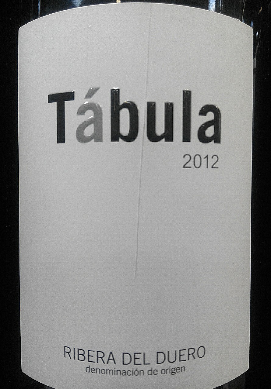 Hoy catamos Tábula 2012. Estamos hoy ante otro vino monovarietal Tempranillo, pero con la diferencia de que es un vino que supera a los tradicionales crianza, ya que pasa en barricas un período de 16 meses, acercándose más a un reserva que a un crianza. Es elaborado por Bodegas y Viñedos Tábula en la DO Ribera del Duero.