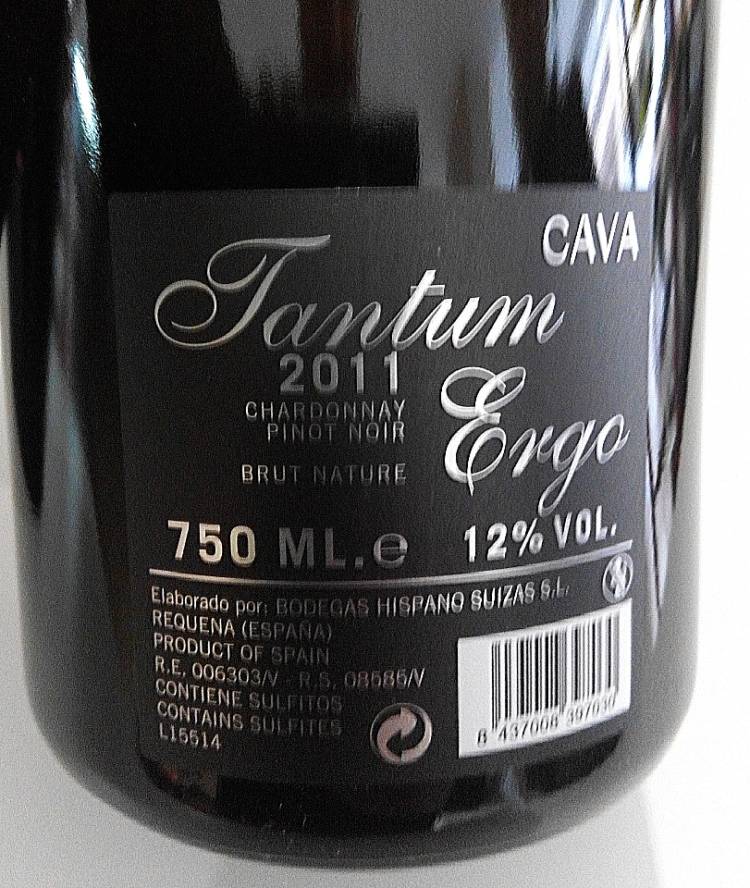 Estamos llegando a la Navidad y es bueno que repasemos a los espumosos o cavas, ya que es la época más proclive a su comercialización. Hoy os comentamos este Cava Tantum Ergo Chardonnay Pinot Noir Brut 2011, elaborado en la D.O. Cava en Utiel-Requena elaborado por Bodegas Hispano+Suizas.