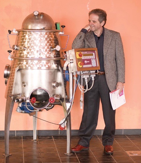 El robot fermentador de vino ha recibido el nombre de Génesis y es una idea original del Dr. Donato Lanati, titular de la empresa italiana de investigación vino Enosis Meraviglia con sede en el Piamonte.