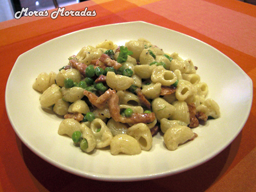 Coditos con bacon y guisantes