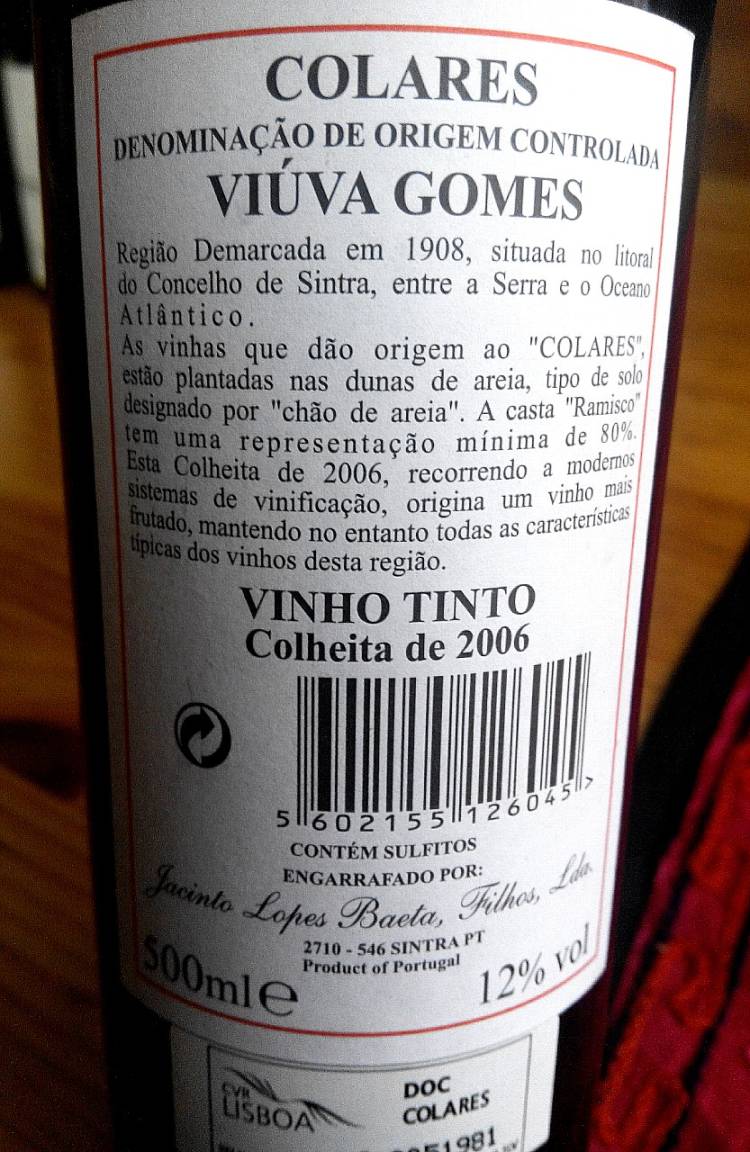 Elaborado en Colares, Denominación de Origen Controlada Viúva Gomes, se ubica en una zona pegada al concello de Sintra, entre la Sierra y el Oceáno Atlántico, muy poco conocida si no eres amante de los vinos portugueses.