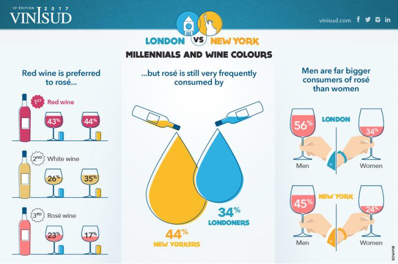 Y otra sorpresa. Muchos creen que el rosado es un vino más de paladares femeninos y podemos ver que es justamente lo contrario en las dos ciudades.