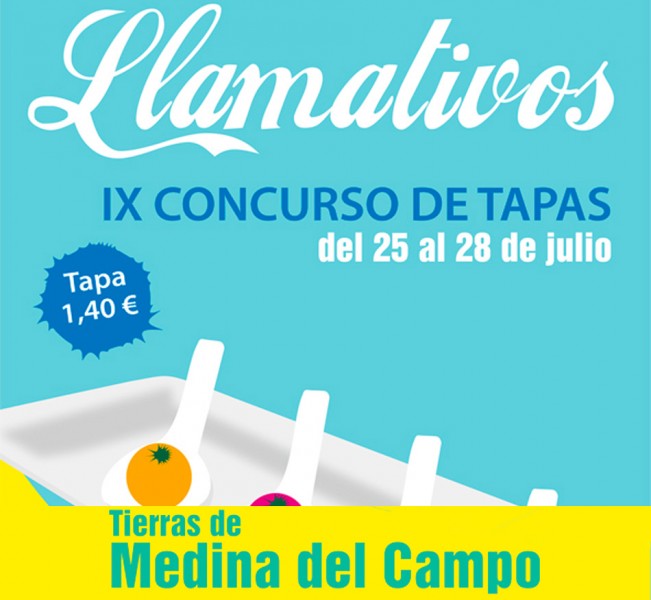 Llamativos 2013 es el nombre de la novena edición del Concurso de Tapas de Medina del Campo (Valladolid) que se va a celebrar del 25 al 28 de julio. Participan 14 establecimientos y cada uno de ellos ofrecerá una tapa fría y una tapa caliente, podéis conocer las tapas de este certamen a continuación.