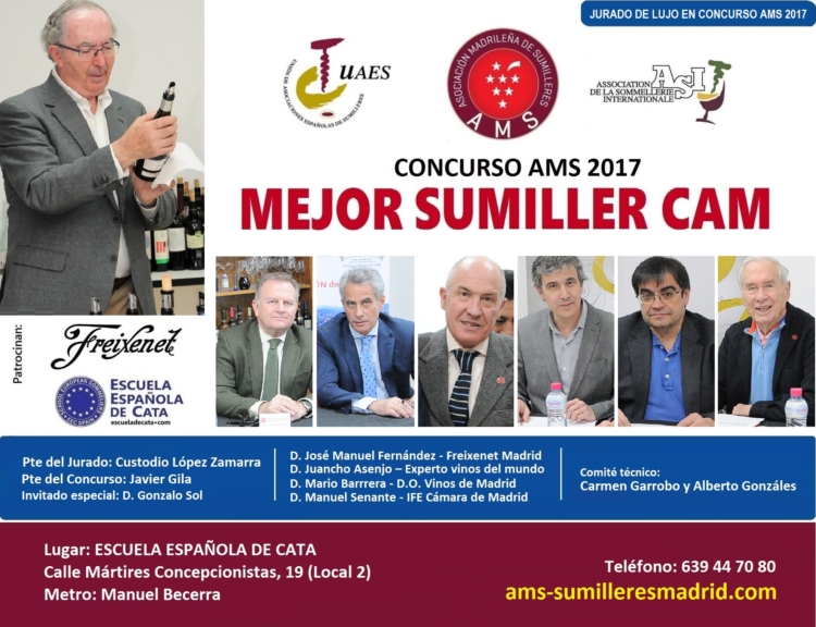 En un ambiente de cordialidad y expectación por la presencia de ilustres representantes del mundo del vino de Madrid, la Asociación Madrileña de Sumilleres eligió a sus dos representantes ante el Concurso Mejor Sumiller de España 2017 con la participación -además de los tres finalistas-de los siguientes inscritos: Emilia Beatriz Santiago Montes (El Corte Inglés), Jonathan Lima Pérez (Restaurante El Inti de Oro), Mª Concepción García González (Blogger Descorchando Versos), Javier Pons Penades (La Mancha Wines), Arturo Garré Sánchez (Asesoría Gastronómica) y Raúl Miguel Revilla (Restaurante Zalacaín).