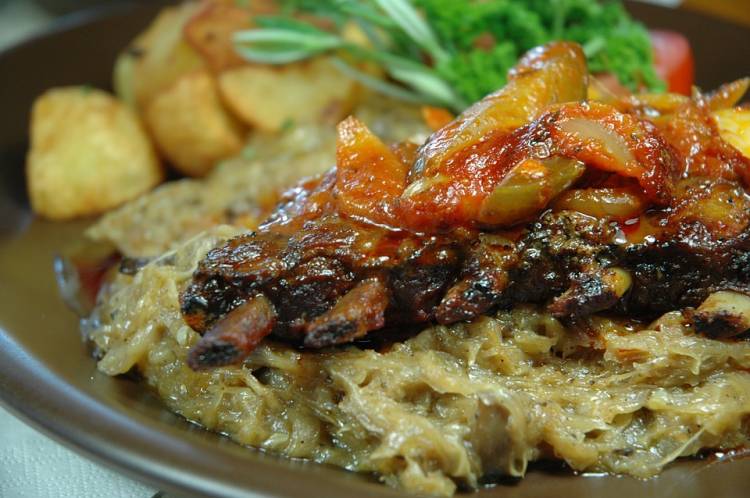 Se trata de una receta que aprendimos hacerla como una variante del chucrut alemán, pero empleando un costillar de cerdo que es más nuestro.