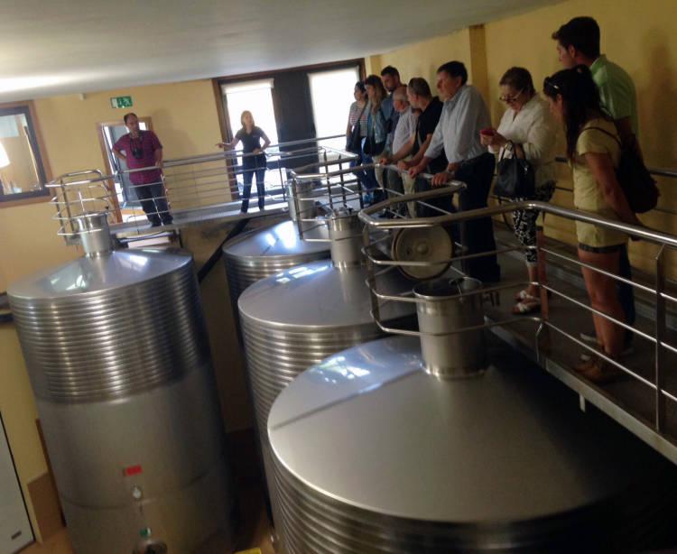 Esta actividad también llevó a los participantes al interior de la bodega, donde pudieron presenciar las fases de entrada y selección de la uva, así como los procesos de despalillado y estrujado. Una visión que se complementaba con las explicaciones del personal de Adega Eidos. Como broche final, se ofreció una degustación de vinos elaborados en esta bodega ubicada en Sanxenxo.