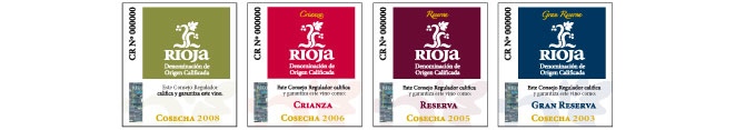 Estas son las etiquetas que emplea el Consejo Regulador Denominación de Origen Calificada Rioja, responsable de velar por la calidad de lo vinos que se producen a su amparo.