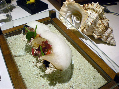 El muy conocido chef Heston Blumenthal, del restaurante The Fat Duck, siempre en el top 10 de los mejores restaurantes y chefs del mundo, en su carta tiene un plato que se denomina 'Son de mar' (SOUND OF THE SEA), plato en el que los comensales mientras degustan un plato elaborado con marisco, escuchan una grabación del sonido del océano. Quien lo ha probado dice que es una experiencia nunca antes vivida.