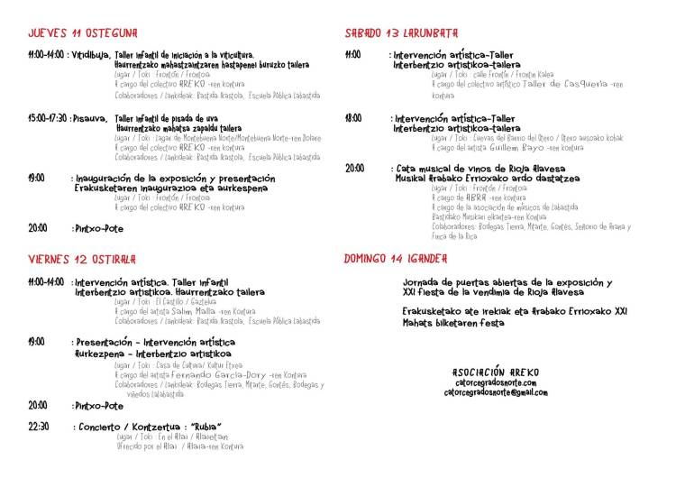 Este evento es en si mismo ya un conjunto de actividades de todo tipo, no solo artísticas, sino que también gastronómicas o lúdicas, que se convierten en la antesala ideal para la posterior feria riojalavesa.