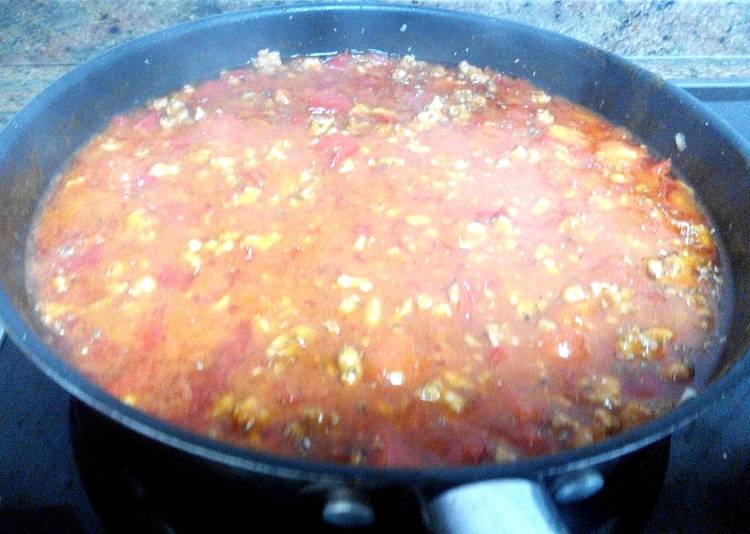 Seguimos sofriendo y los tomates se iran deshaciemndo y soltando salsa. Si no nos llegase o nos gusta con más color, podemos echarle un botecito de tomate frito. Revolvemos y mezclamos todo bien y dejamos unos minutos todo cociéndose.