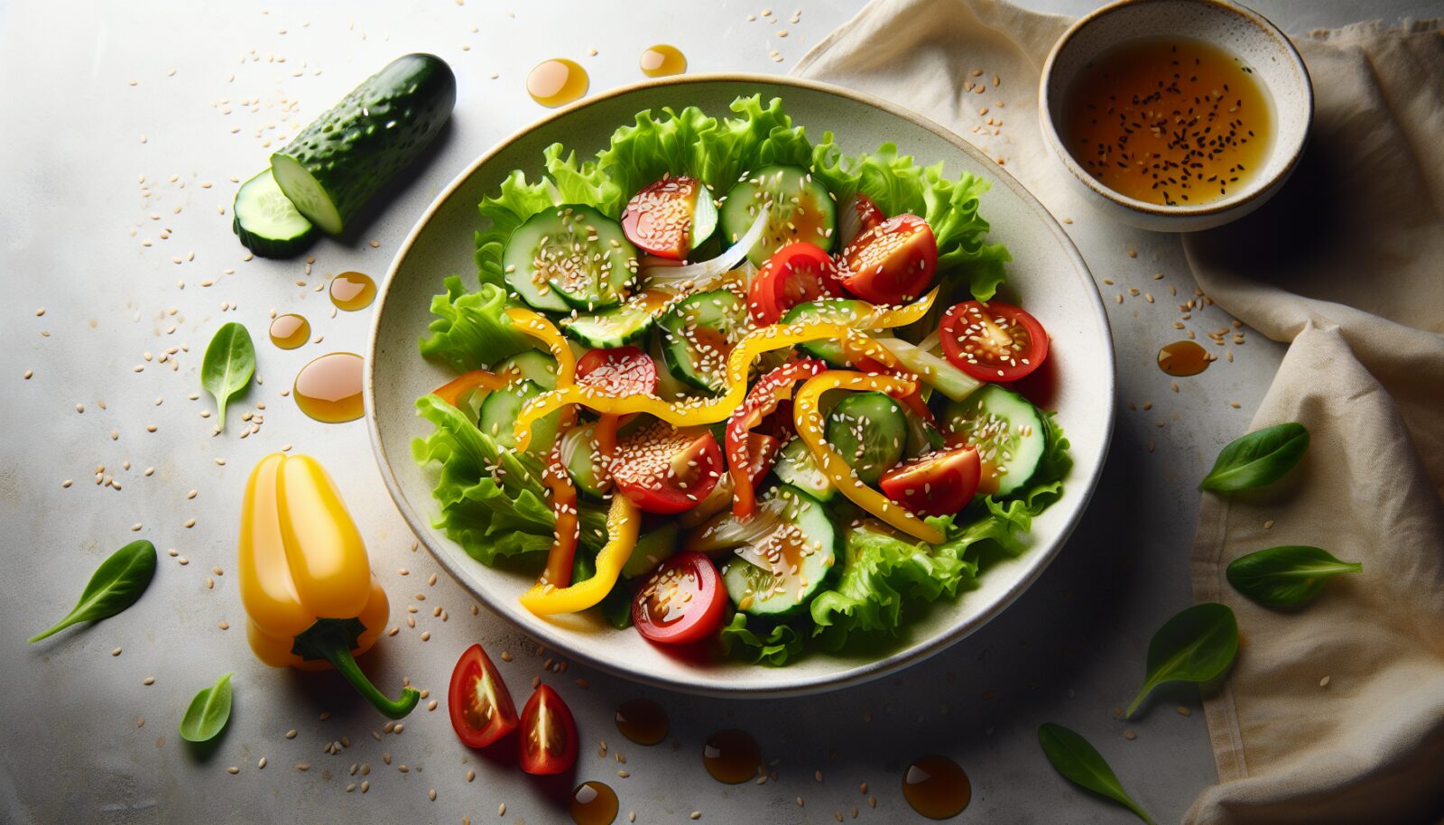 Esta ensalada con aderezo dulce de ajonjolí no solo aporta un festín de sabores, sino que también es un plato lleno de beneficios para la salud. Anímate a probarla y descubre lo fácil que es incorporar más frescura y color a tu mesa. ¡Buen provecho!