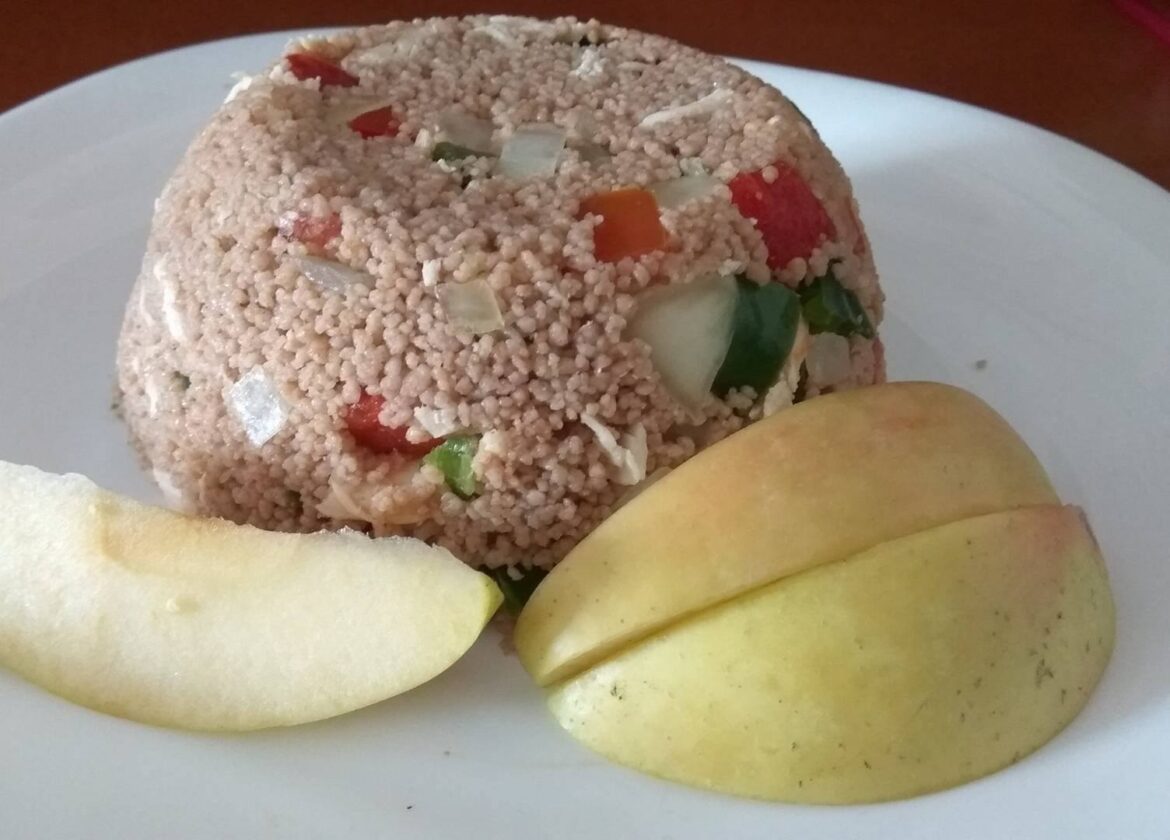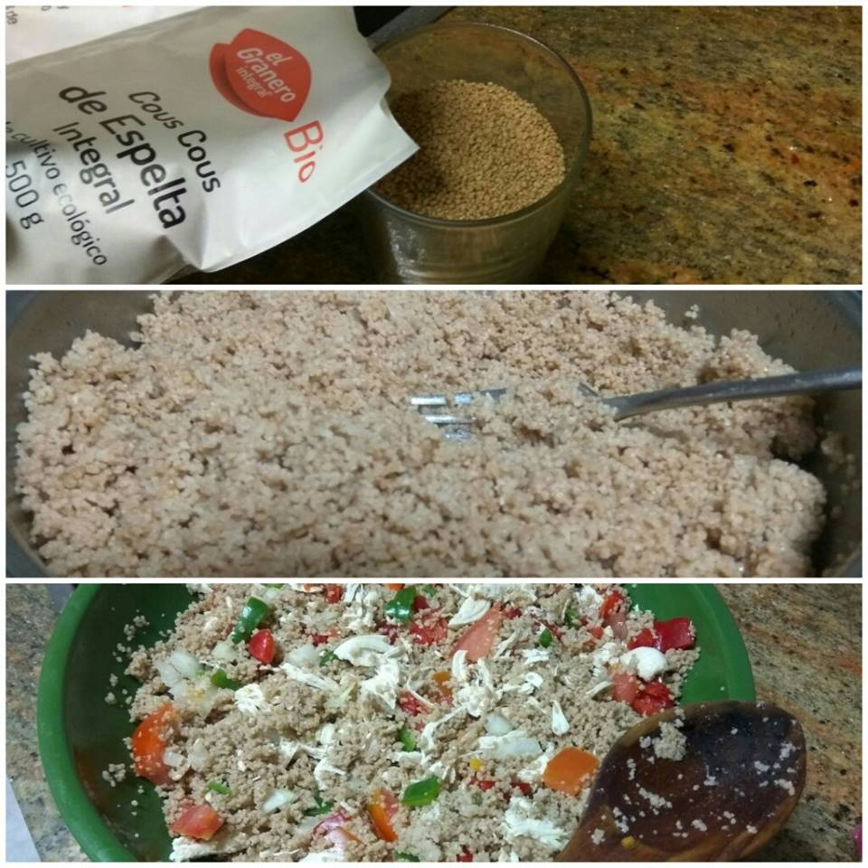 Ensalada de Cous Cous de Espelta Integral Bio con pollo y hortalizas, como los alimentos Bio dan muchísimo sabor
