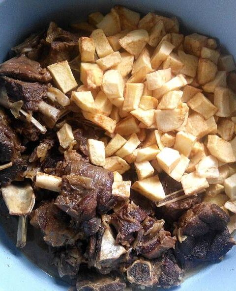 En nuestra receta lo único que puede tener algo de truco es el cortado de la cebolla ya que la cortamos de dos formas, una en aros que partimos a la mitad y otra muy fina, que al cortarla se enrosque.
