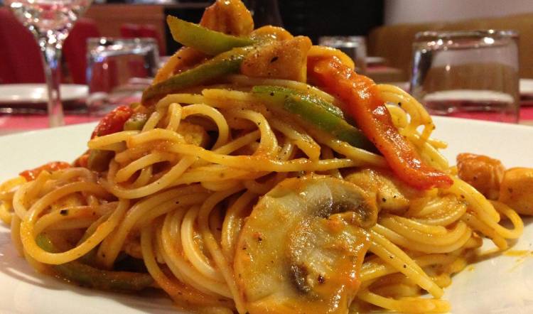 Nos gusta la combinación porque hace que los pequeños coman verduras al ir 'engañadas' entre los espaguetis además de que el pollo ayuda a que se coman todo.