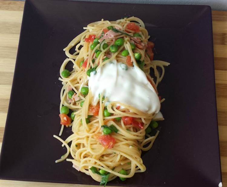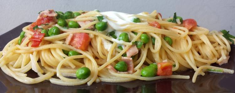 Hoy aumentamos nuestra recetas de espaguetis, que sabemos que tanto os gustan, de la mano de esta receta de nuestro colaborador Sergio con esta receta de Espaguetis con guisantes y yogurt. Muy sencilla y rica y seguro que le encanta a los peques de la casa,..., y a los no tan peques.