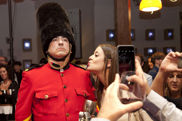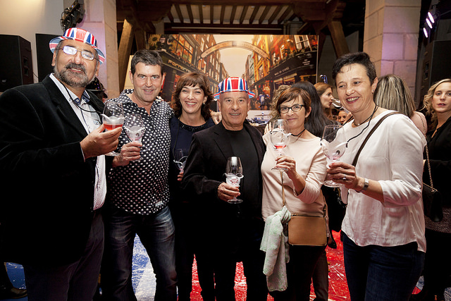 Éxito del Viaje a Londres a través del vino DO Navarra. Mil personas vibraron en torno a los vinos Navarra en una noche única e irrepetible. La Sala de Armas de la Ciudadela de Pamplona acogía una exitosa edición de La Noche del Vino en la que los asistentes pudieron vivir y disfrutar del “vibrante Londres”, representado en la calle Carnaby de los años 60, en plena explosión cultural, que dejaba atrás los fantasmas de una época oscura de postguerra en la historia de la ciudad. La fiesta fue inaugurada con una recepción oficial de “la Reina de Inglaterra” representada por Tefi de Paz y Austin Powers recreado por Pablo del Mundillo. Tras ellos, se abrían las puertas de un auténtico homenaje al Pop más británico. La planta baja, decorada por Nicolás Alba, acogía talleres donde el público pudo pintar bombines y discos de vinilo al ritmo de los acordes de la banda tributo a los Beatles, los Beat-Less. El grupo contagió el optimismo a los asistentes que también bailaron al son marcado por el DJ Funk Fatale que pinchó temas de los grandes exponentes del “BritPop”.