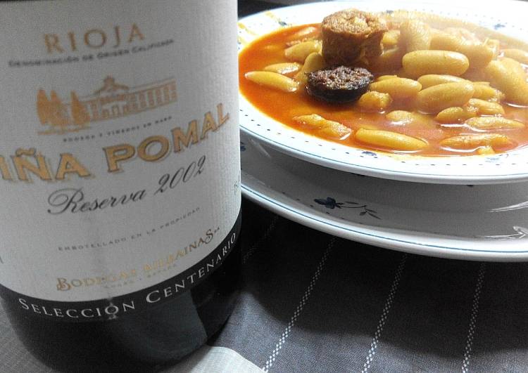 Fabada asturiana y tinto Rioja Reserva es la segunda vez que lo maridamos pero con otro vino completamente diferente al anterior. Si la primera vez maridamos con un Viña Ardanza de 1999, en esta ocasión hemos decidido maridarlo con un Viña Pomal Reserva 2002 Selección Centenario. Y decimos que el maridaje es diferente al anterior por el tipo de crianza de este vino ya que, aunque es también un reserva con presencia mayoritaria de la Tempranillo, el período de crianza en barrica es sustancialmente diferente, dando como resultado un vino diferente para maridar.