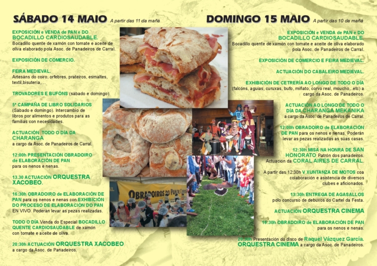 Festa do pan de Carral. Conocido es que Galicia es una tierra de buen pan. Muchas son las localidades que son conocidas por la elaboración de este 'indispensable' alimento para muchos de nosotros. Pues este fin de semana tenemos la oportunidad de asistir a la fiesta gastronómica de uno de estos famoso panes. Se trata de la celebración mañana sábado y pasado domingo de la 'Festa do pan de Carral', que alcanza en este año 2016 su décimocuarta edición.